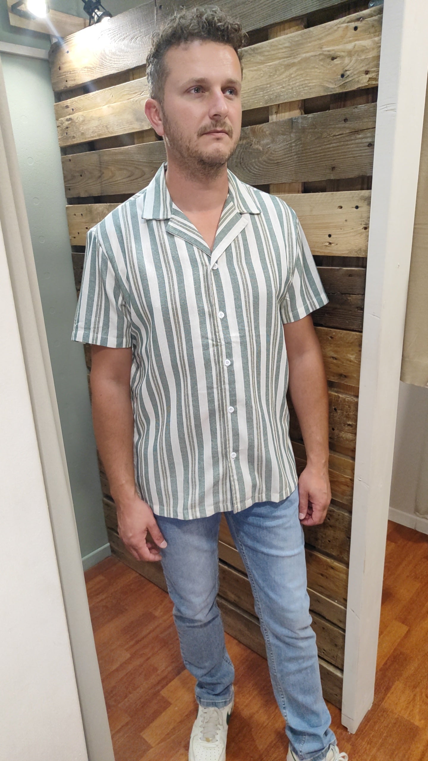 Chemisette coton et lin à rayures sauge