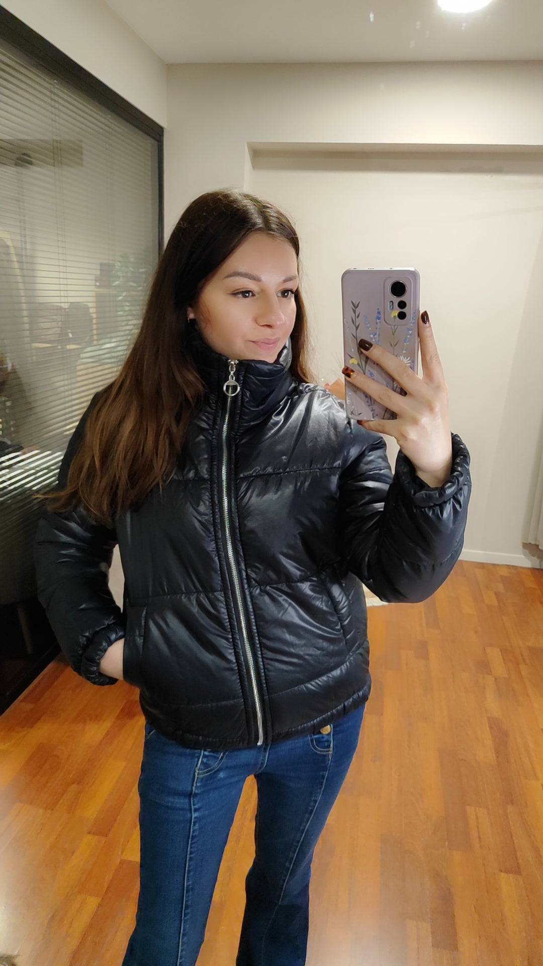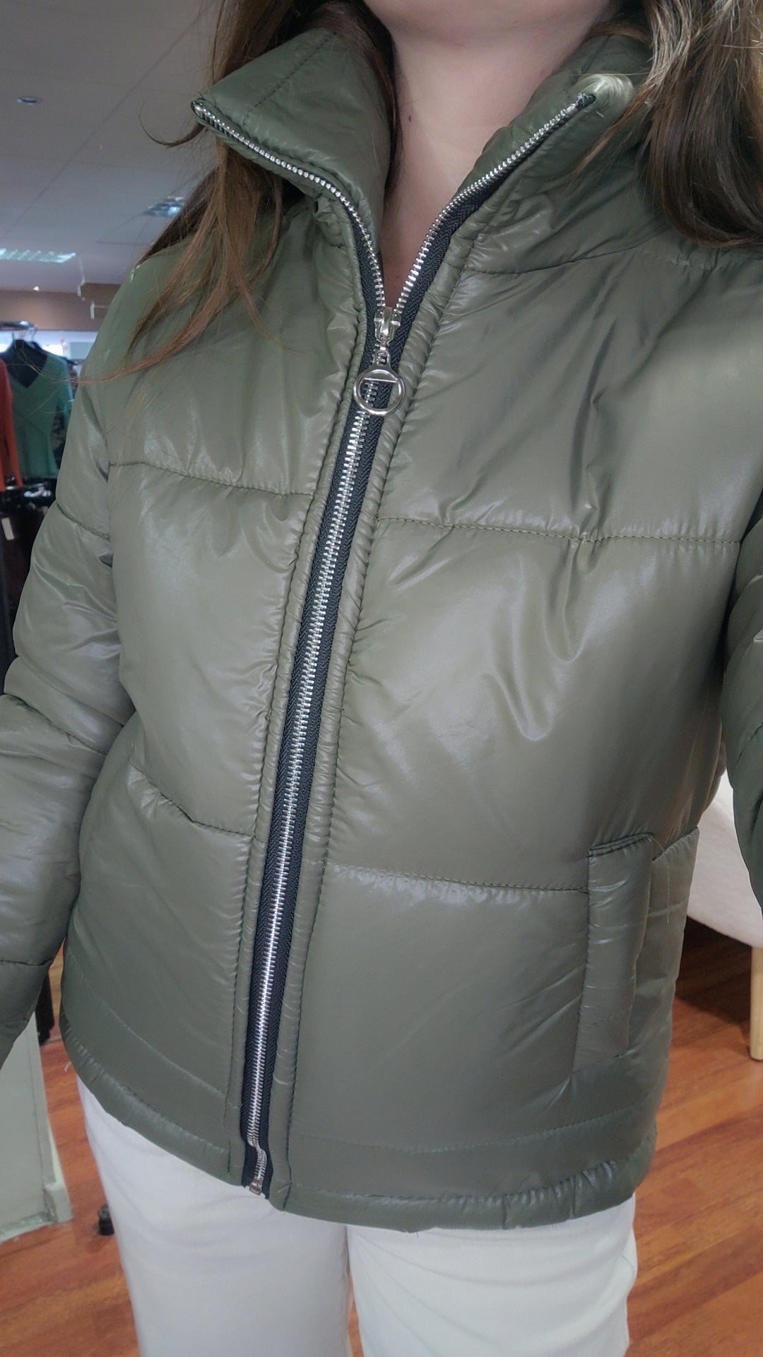 Doudoune brillante (noire ou kaki)