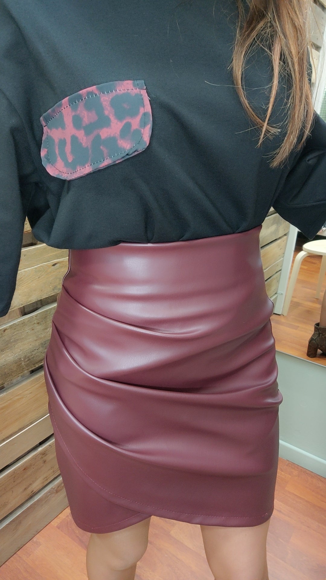Jupe simili drapée bordeaux