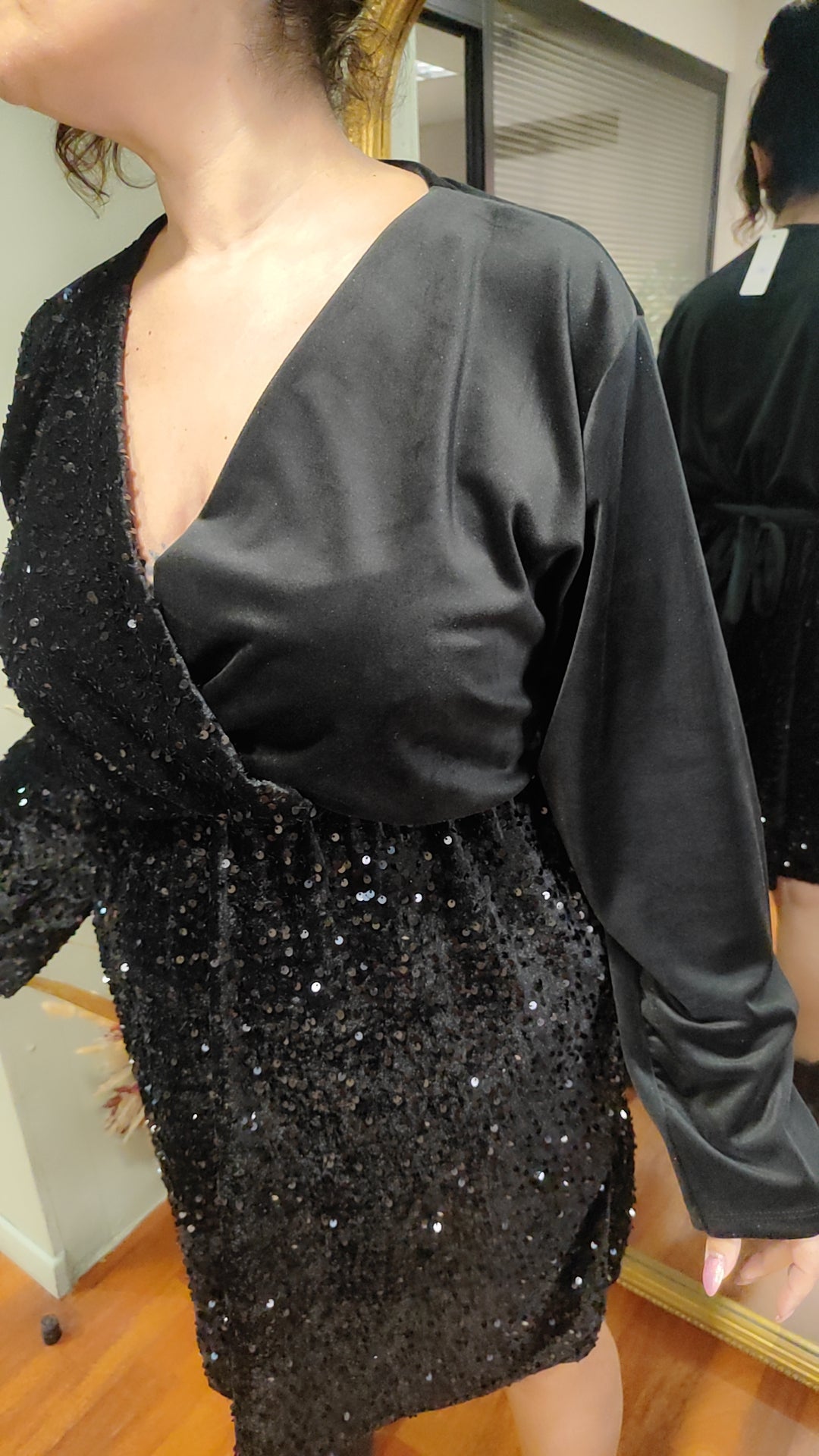 Robe velours et sequins noire